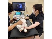 エコー検査での保定 診察や手術時の獣医の助手も看護師の重要な仕事の一つです。 -