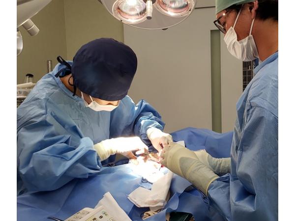 看護師さんは腹腔鏡手術や耳鏡検査・膀胱鏡検査で助手に入ってもらったり、薬や病気について飼い主様に説明し、獣医と飼い主様の間に入ってもらい活躍しています。
